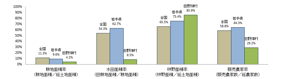 注1:耕地面積は令和6年面積調査、漁港数は水産庁資料「漁港一覧」(令和7年4月1日現在)、漁業就業者数、漁業経営体数、漁船隻数については2023年漁業センサス、総世帯数は令和2年国勢調査、農産物直売所数は2010年世界農林業センサス、前記以外は2020年農林業センサス。 |