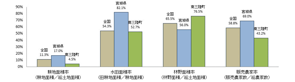 注1:耕地面積は令和6年面積調査、漁港数は水産庁資料「漁港一覧」(令和7年4月1日現在)、漁業就業者数、漁業経営体数、漁船隻数については2023年漁業センサス、総世帯数は令和2年国勢調査、農産物直売所数は2010年世界農林業センサス、前記以外は2020年農林業センサス。 |