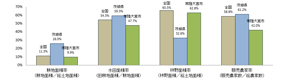 注1:耕地面積は令和6年面積調査、漁港数は水産庁資料「漁港一覧」(令和7年4月1日現在)、漁業就業者数、漁業経営体数、漁船隻数については2023年漁業センサス、総世帯数は令和2年国勢調査、農産物直売所数は2010年世界農林業センサス、前記以外は2020年農林業センサス。 |