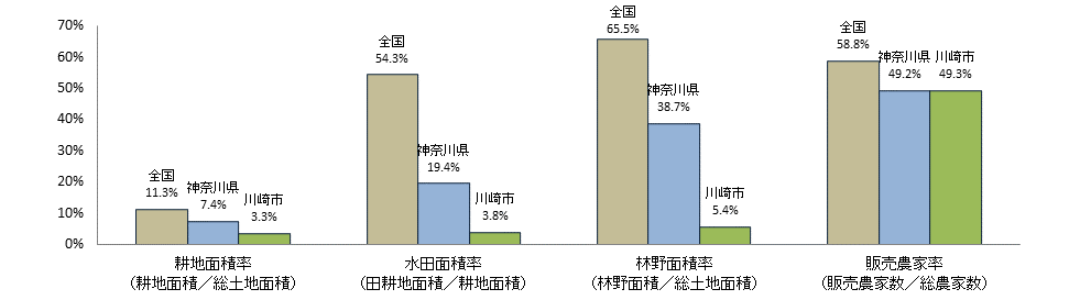 注1:耕地面積は令和6年面積調査、漁港数は水産庁資料「漁港一覧」(令和7年4月1日現在)、漁業就業者数、漁業経営体数、漁船隻数については2023年漁業センサス、総世帯数は令和2年国勢調査、農産物直売所数は2010年世界農林業センサス、前記以外は2020年農林業センサス。 |