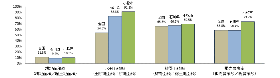 注1:耕地面積は令和6年面積調査、漁港数は水産庁資料「漁港一覧」(令和7年4月1日現在)、漁業就業者数、漁業経営体数、漁船隻数については2023年漁業センサス、総世帯数は令和2年国勢調査、農産物直売所数は2010年世界農林業センサス、前記以外は2020年農林業センサス。 |