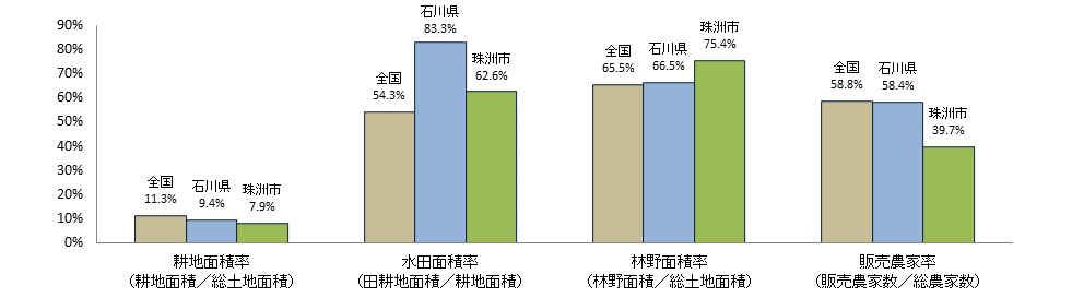 注1:耕地面積は令和6年面積調査、漁港数は水産庁資料「漁港一覧」(令和7年4月1日現在)、漁業就業者数、漁業経営体数、漁船隻数については2023年漁業センサス、総世帯数は令和2年国勢調査、農産物直売所数は2010年世界農林業センサス、前記以外は2020年農林業センサス。 |