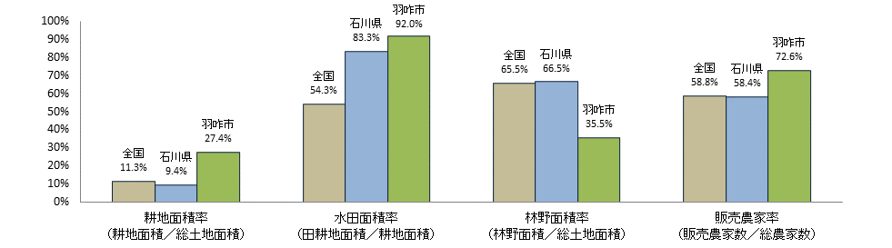 注1:耕地面積は令和6年面積調査、漁港数は水産庁資料「漁港一覧」(令和7年4月1日現在)、漁業就業者数、漁業経営体数、漁船隻数については2023年漁業センサス、総世帯数は令和2年国勢調査、農産物直売所数は2010年世界農林業センサス、前記以外は2020年農林業センサス。 |