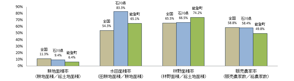 | 注1:耕地面積は令和6年面積調査、漁港数は水産庁資料「漁港一覧」(令和7年4月1日現在)、漁業就業者数、漁業経営体数、漁船隻数については2023年漁業センサス、総世帯数は令和2年国勢調査、農産物直売所数は2010年世界農林業センサス、前記以外は2020年農林業センサス。 |