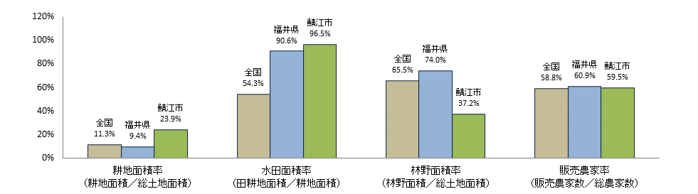 | 注1:耕地面積は令和6年面積調査、漁港数は水産庁資料「漁港一覧」(令和7年4月1日現在)、漁業就業者数、漁業経営体数、漁船隻数については2023年漁業センサス、総世帯数は令和2年国勢調査、農産物直売所数は2010年世界農林業センサス、前記以外は2020年農林業センサス。 |