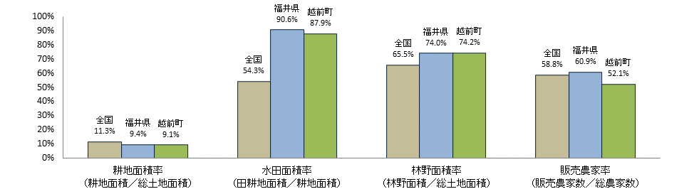 | 注1:耕地面積は令和6年面積調査、漁港数は水産庁資料「漁港一覧」(令和7年4月1日現在)、漁業就業者数、漁業経営体数、漁船隻数については2023年漁業センサス、総世帯数は令和2年国勢調査、農産物直売所数は2010年世界農林業センサス、前記以外は2020年農林業センサス。 |