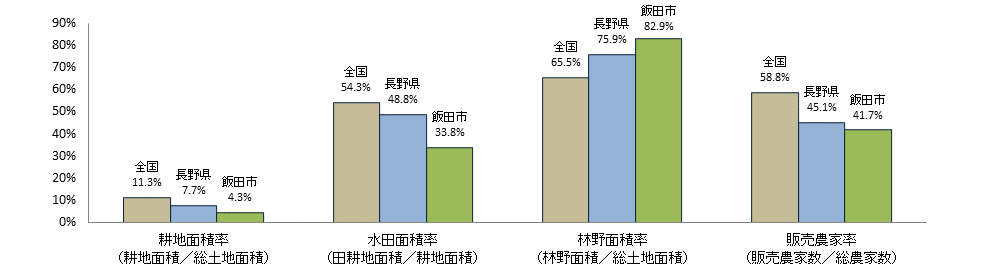 注1:耕地面積は令和6年面積調査、漁港数は水産庁資料「漁港一覧」(令和7年4月1日現在)、漁業就業者数、漁業経営体数、漁船隻数については2023年漁業センサス、総世帯数は令和2年国勢調査、農産物直売所数は2010年世界農林業センサス、前記以外は2020年農林業センサス。 |
