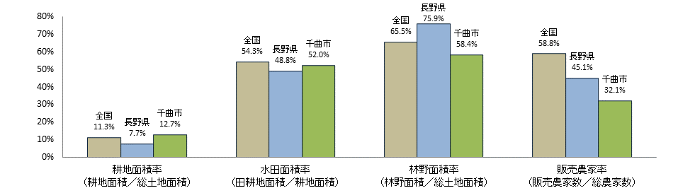 | 注1:耕地面積は令和6年面積調査、漁港数は水産庁資料「漁港一覧」(令和7年4月1日現在)、漁業就業者数、漁業経営体数、漁船隻数については2023年漁業センサス、総世帯数は令和2年国勢調査、農産物直売所数は2010年世界農林業センサス、前記以外は2020年農林業センサス。 |