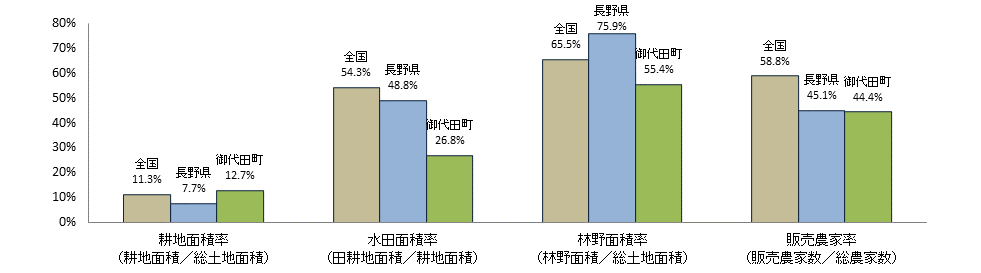 | 注1:耕地面積は令和6年面積調査、漁港数は水産庁資料「漁港一覧」(令和7年4月1日現在)、漁業就業者数、漁業経営体数、漁船隻数については2023年漁業センサス、総世帯数は令和2年国勢調査、農産物直売所数は2010年世界農林業センサス、前記以外は2020年農林業センサス。 |
