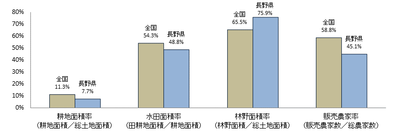 | 注1:耕地面積は令和6年面積調査、漁港数は水産庁資料「漁港一覧」(令和7年4月1日現在)、漁業就業者数、漁業経営体数、漁船隻数については2023年漁業センサス、総世帯数は令和2年国勢調査、農産物直売所数は2010年世界農林業センサス、前記以外は2020年農林業センサス。 |