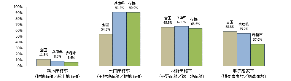 注1:耕地面積は令和6年面積調査、漁港数は水産庁資料「漁港一覧」(令和7年4月1日現在)、漁業就業者数、漁業経営体数、漁船隻数については2023年漁業センサス、総世帯数は令和2年国勢調査、農産物直売所数は2010年世界農林業センサス、前記以外は2020年農林業センサス。 |