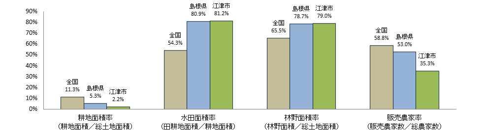注1:耕地面積は令和6年面積調査、漁港数は水産庁資料「漁港一覧」(令和7年4月1日現在)、漁業就業者数、漁業経営体数、漁船隻数については2023年漁業センサス、総世帯数は令和2年国勢調査、農産物直売所数は2010年世界農林業センサス、前記以外は2020年農林業センサス。 |