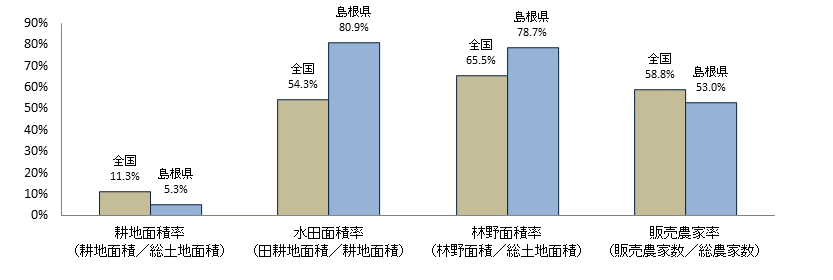注1:耕地面積は令和6年面積調査、漁港数は水産庁資料「漁港一覧」(令和7年4月1日現在)、漁業就業者数、漁業経営体数、漁船隻数については2023年漁業センサス、総世帯数は令和2年国勢調査、農産物直売所数は2010年世界農林業センサス、前記以外は2020年農林業センサス。 |