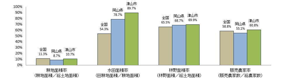注1:耕地面積は令和6年面積調査、漁港数は水産庁資料「漁港一覧」(令和7年4月1日現在)、漁業就業者数、漁業経営体数、漁船隻数については2023年漁業センサス、総世帯数は令和2年国勢調査、農産物直売所数は2010年世界農林業センサス、前記以外は2020年農林業センサス。 |