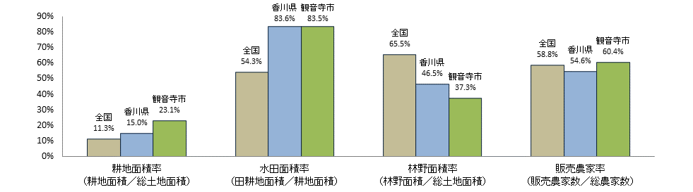 注1:耕地面積は令和6年面積調査、漁港数は水産庁資料「漁港一覧」(令和7年4月1日現在)、漁業就業者数、漁業経営体数、漁船隻数については2023年漁業センサス、総世帯数は令和2年国勢調査、農産物直売所数は2010年世界農林業センサス、前記以外は2020年農林業センサス。 |