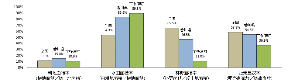 注1:耕地面積は令和6年面積調査、漁港数は水産庁資料「漁港一覧」(令和7年4月1日現在)、漁業就業者数、漁業経営体数、漁船隻数については2023年漁業センサス、総世帯数は令和2年国勢調査、農産物直売所数は2010年世界農林業センサス、前記以外は2020年農林業センサス。 |