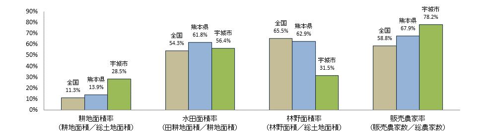 | 注1:耕地面積は令和6年面積調査、漁港数は水産庁資料「漁港一覧」(令和7年4月1日現在)、漁業就業者数、漁業経営体数、漁船隻数については2023年漁業センサス、総世帯数は令和2年国勢調査、農産物直売所数は2010年世界農林業センサス、前記以外は2020年農林業センサス。 |