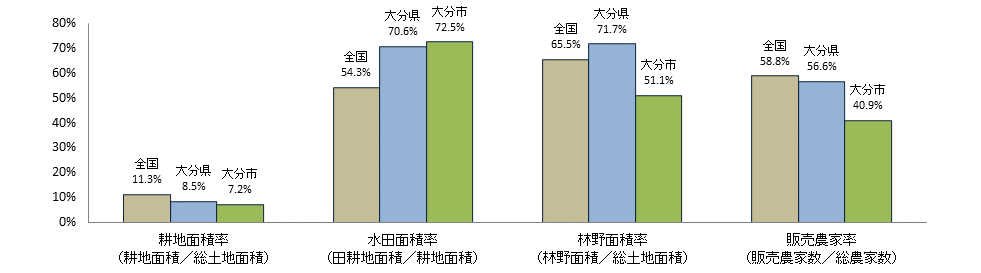 注1:耕地面積は令和6年面積調査、漁港数は水産庁資料「漁港一覧」(令和7年4月1日現在)、漁業就業者数、漁業経営体数、漁船隻数については2023年漁業センサス、総世帯数は令和2年国勢調査、農産物直売所数は2010年世界農林業センサス、前記以外は2020年農林業センサス。 |