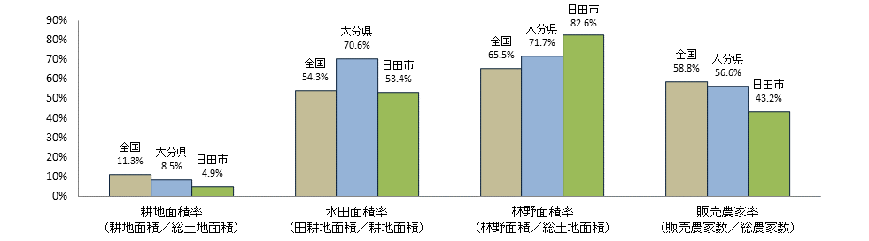 注1:耕地面積は令和6年面積調査、漁港数は水産庁資料「漁港一覧」(令和7年4月1日現在)、漁業就業者数、漁業経営体数、漁船隻数については2023年漁業センサス、総世帯数は令和2年国勢調査、農産物直売所数は2010年世界農林業センサス、前記以外は2020年農林業センサス。 |
