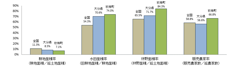 注1:耕地面積は令和6年面積調査、漁港数は水産庁資料「漁港一覧」(令和7年4月1日現在)、漁業就業者数、漁業経営体数、漁船隻数については2023年漁業センサス、総世帯数は令和2年国勢調査、農産物直売所数は2010年世界農林業センサス、前記以外は2020年農林業センサス。 |